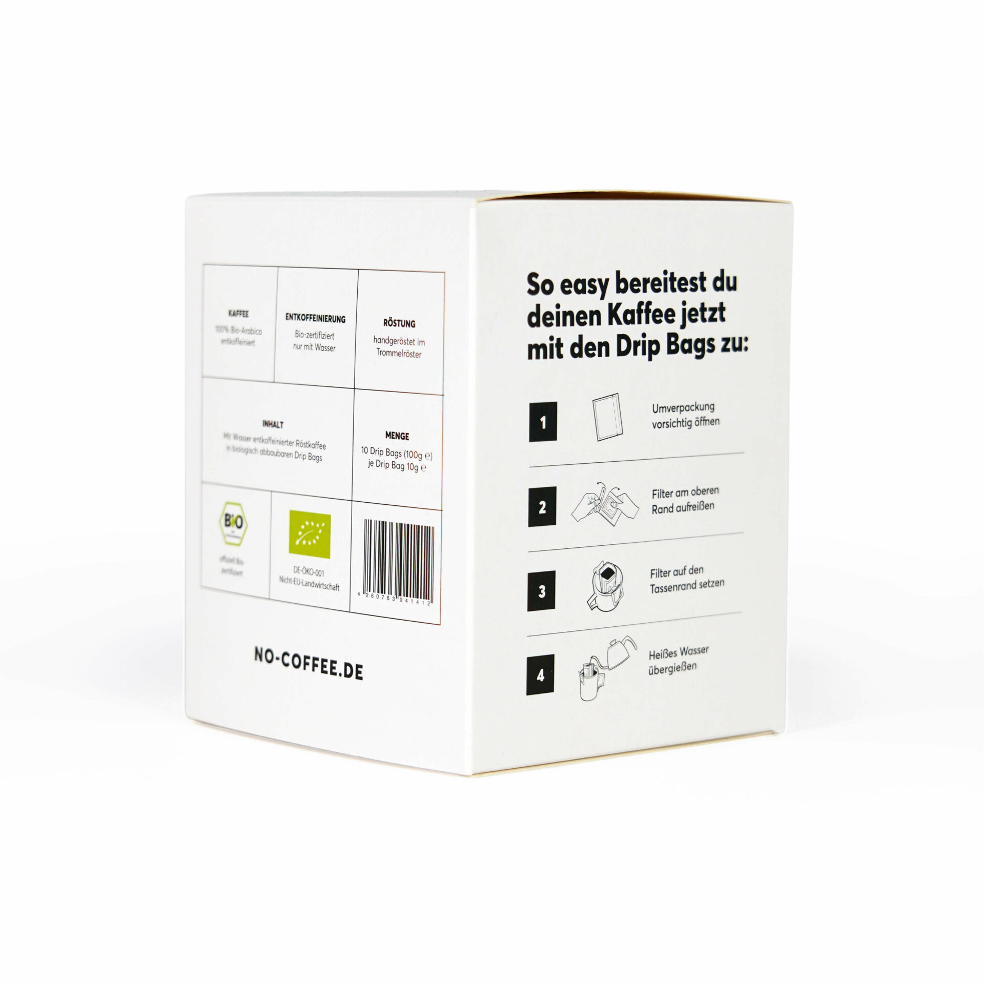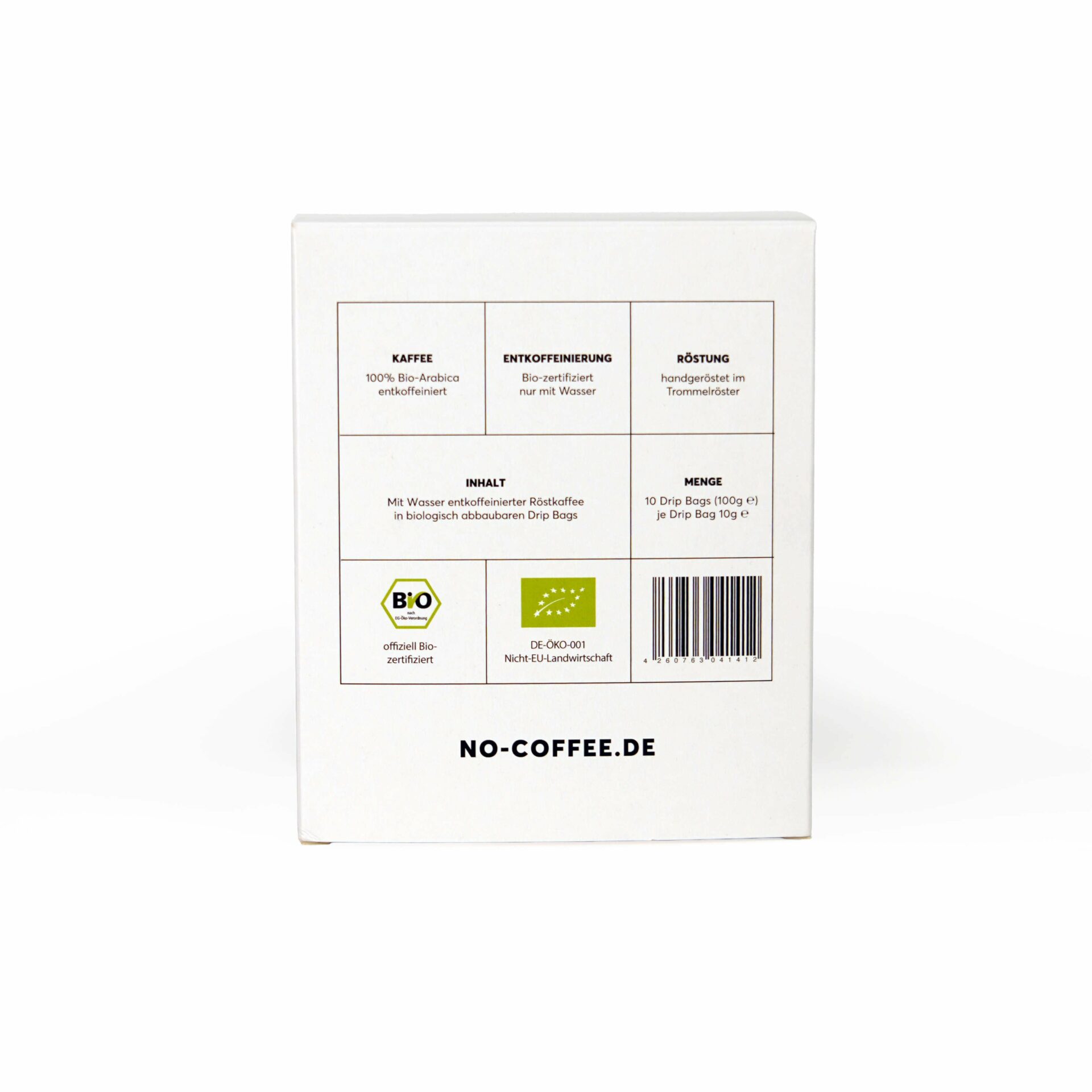 No Coffee – Premium Bio Kaffee in Drip Bags – mit Wasser entkoffeiniert – 10Stk.