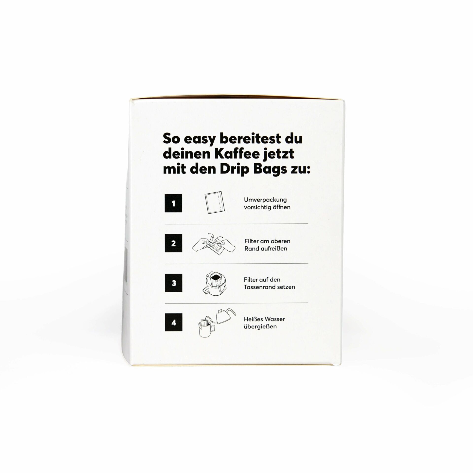 Die Drip Bags sind einzeln in aromaversiegelten Tüten verpackt.