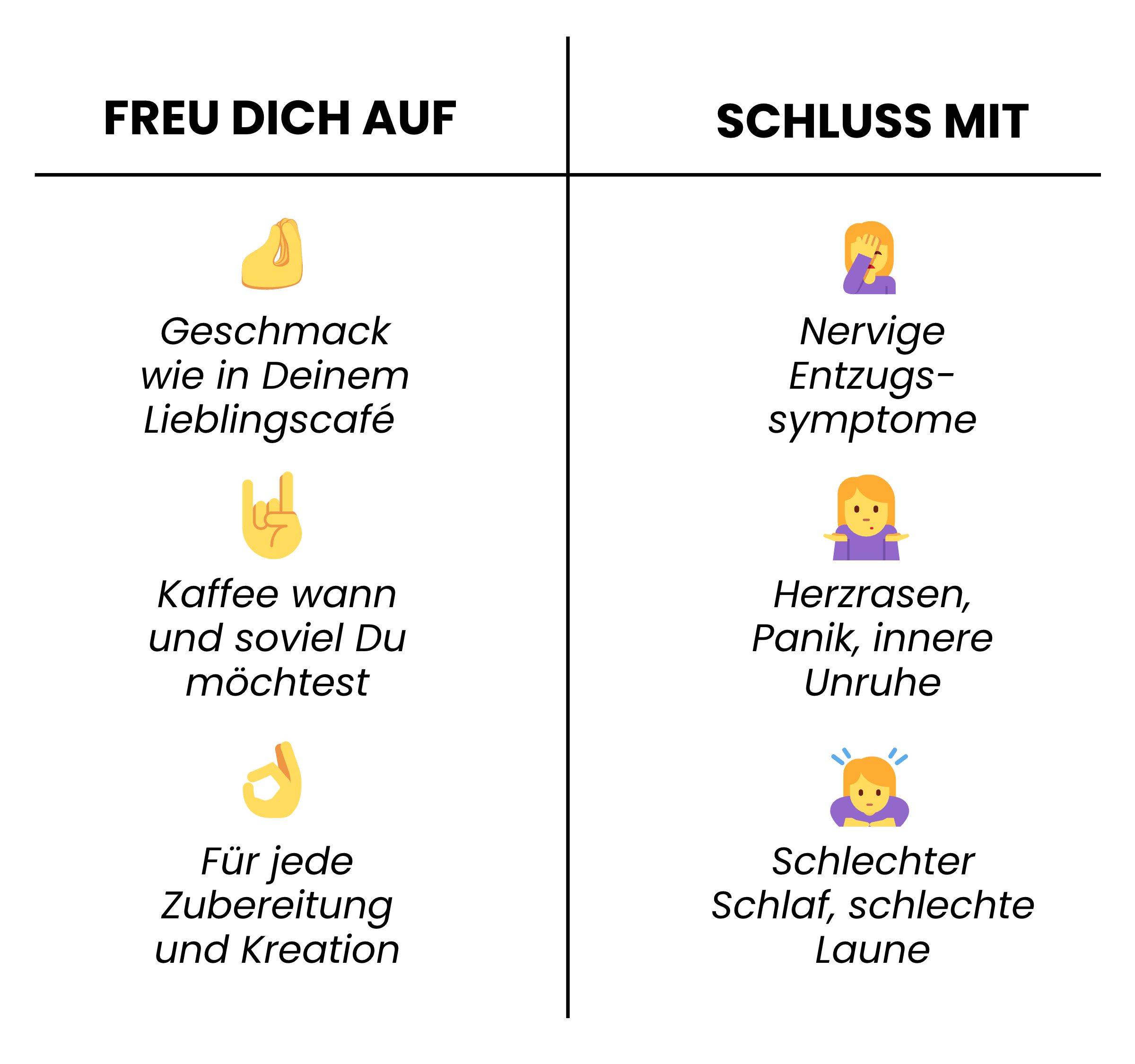 Endlich entkoffeinierter Bio-Kaffee, der 1:1 wie dein Lieblingskaffee schmeckt. Nur ohne die Nebenwirkungen von Koffein.
