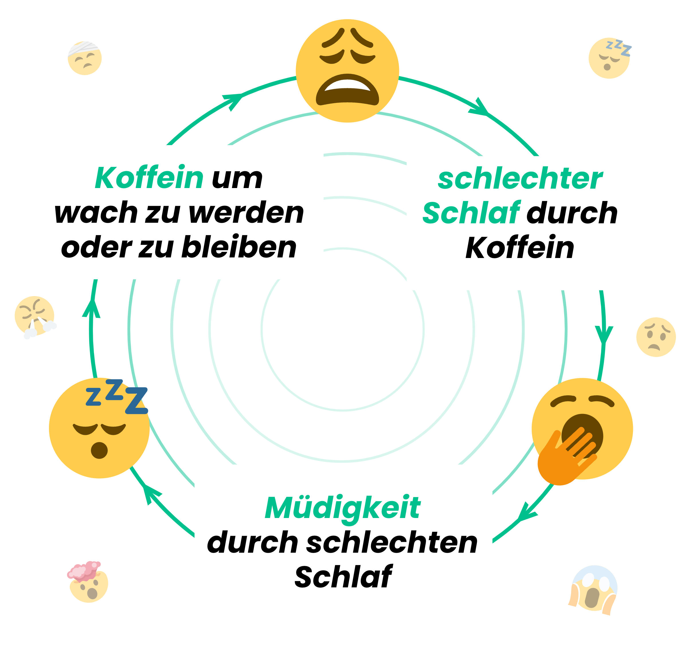 Es ist erwiesen, dass Koffein bei Stress das Stresslevel sogar erhöht. Und was macht man, wenn man mal eine Pause vom Stress braucht: man trinkt erstmal einen Kaffee…Die Folge: Noch mehr Stress. Erkennst Du den Teufelskreis?