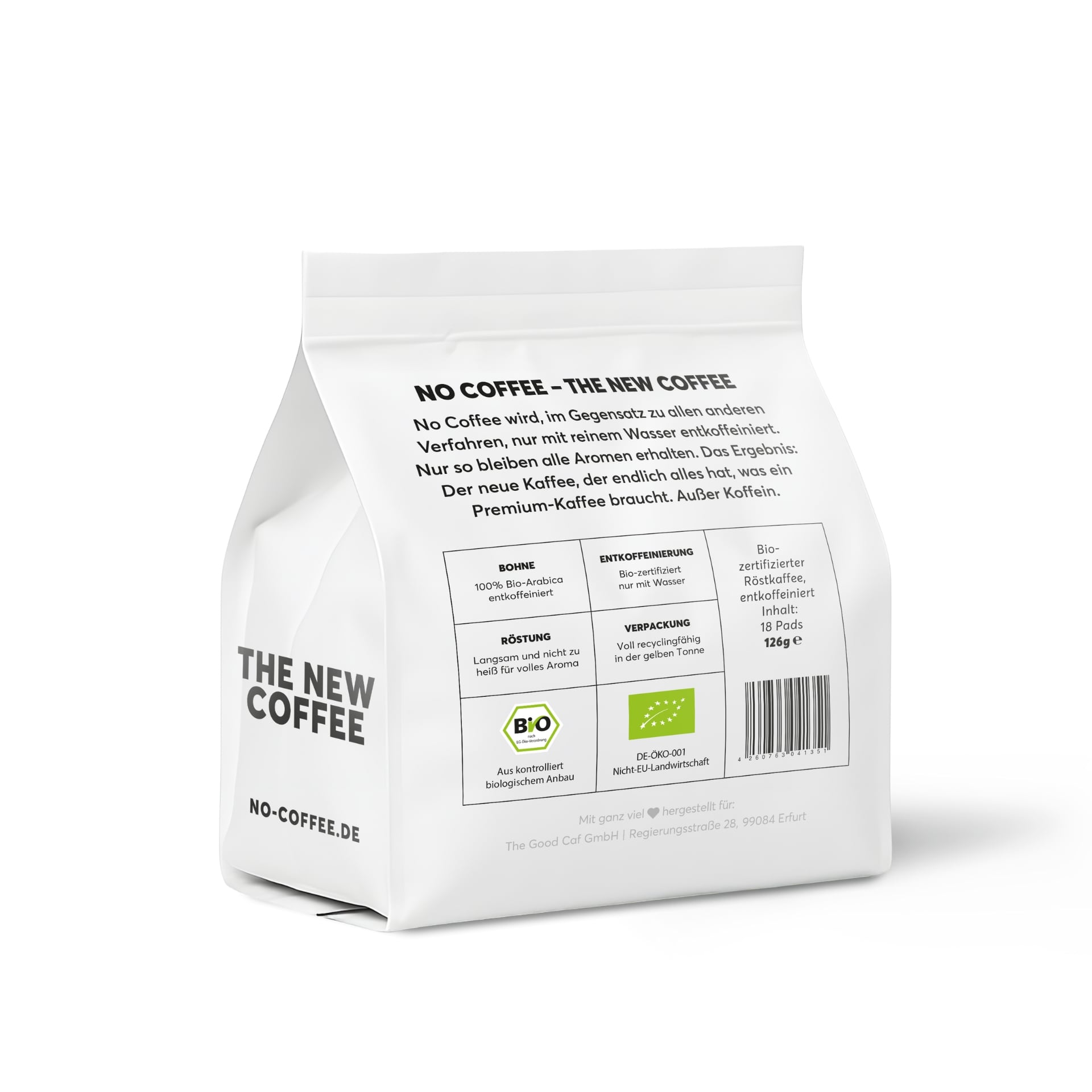 Damit Du morgens mehr Zeit für Dich hast, haben wir uns entschieden, Deinen No Coffee jetzt auch als Pads anzubieten: Pad rein, Kaffee raus. Die gesparte Zeit kannst Du ja zum Genießen nutzen.